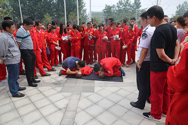 本次演練分三個(gè)階段進(jìn)行。第一階段,1#樓疏散演練。每層樓走廊中點(diǎn)燃煙霧彈,火警通訊組報(bào)告火情,應(yīng)急指揮小組立即啟動(dòng)消防應(yīng)急預(yù)案;消防警鈴響起,疏散組立即組織各樓層人員有秩序地從安全出口逃生;滅火組奔赴“火場”展開滅火行動(dòng),技術(shù)組切斷大樓非消防電源和天然氣管道閥門,人員疏散完畢后,警戒組在大樓周邊拉起警戒線。第二階段,傷員急救演練。疏散演練結(jié)束后,醫(yī)療救助組在教官的指導(dǎo)下對“傷員”實(shí)施了人工呼吸和心肺復(fù)蘇搶救。第三階段,現(xiàn)場滅火演練。公司領(lǐng)導(dǎo)與員工一起使用干粉滅火器將大火撲滅。